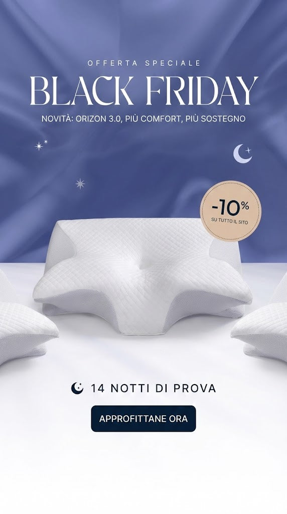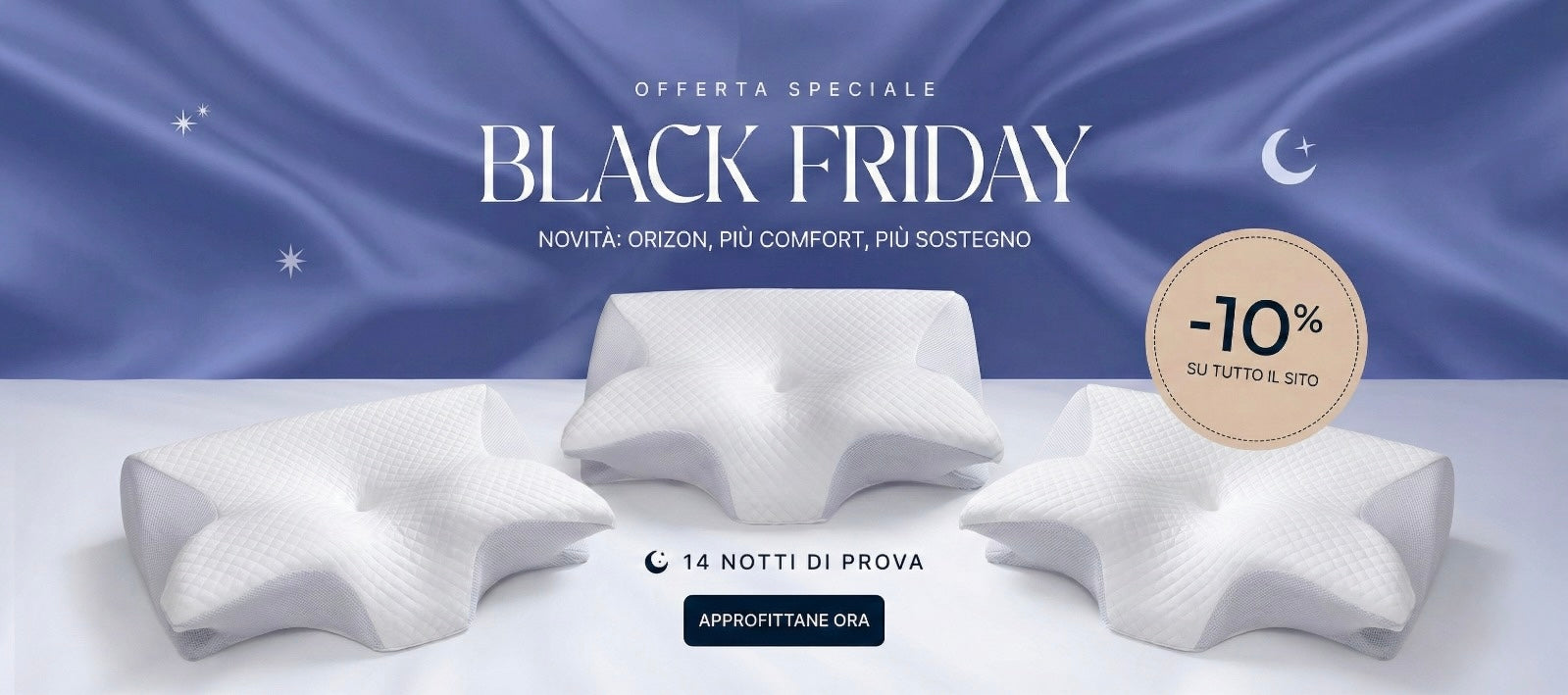 Il Cuscino Orizon è il nostro prodotto di punta: offre un sostegno ergonomico e un comfort superiore. Realizzato con memory foam di alta qualità, si adatta perfettamente a qualsiasi posizione di sonno, garantendo l’allineamento ideale di testa, collo e colonna vertebrale.